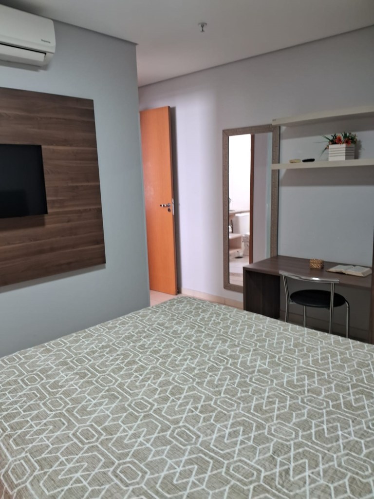 O flat fica bem no centro de Caldas Novas, perto do McDonald’s. Na rua do condomínio também tem um supermercado na esquina, sem falar que, para os corajosos, o Hot Park está a poucos km da cidade.